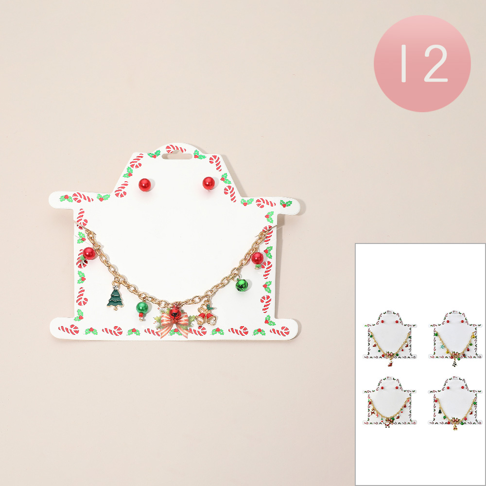 Details • Size : 16" + 3" L • Decor Size : 1" L • Earrings Size : 0.3" L • Celebrate the season with this festive Christmas necklace set featuring playful holiday-themed pendants and vibrant details. Perfect for gifting or adding cheerful style to your outfits, this bracelet set brings a touch of seasonal sparkle to every look.