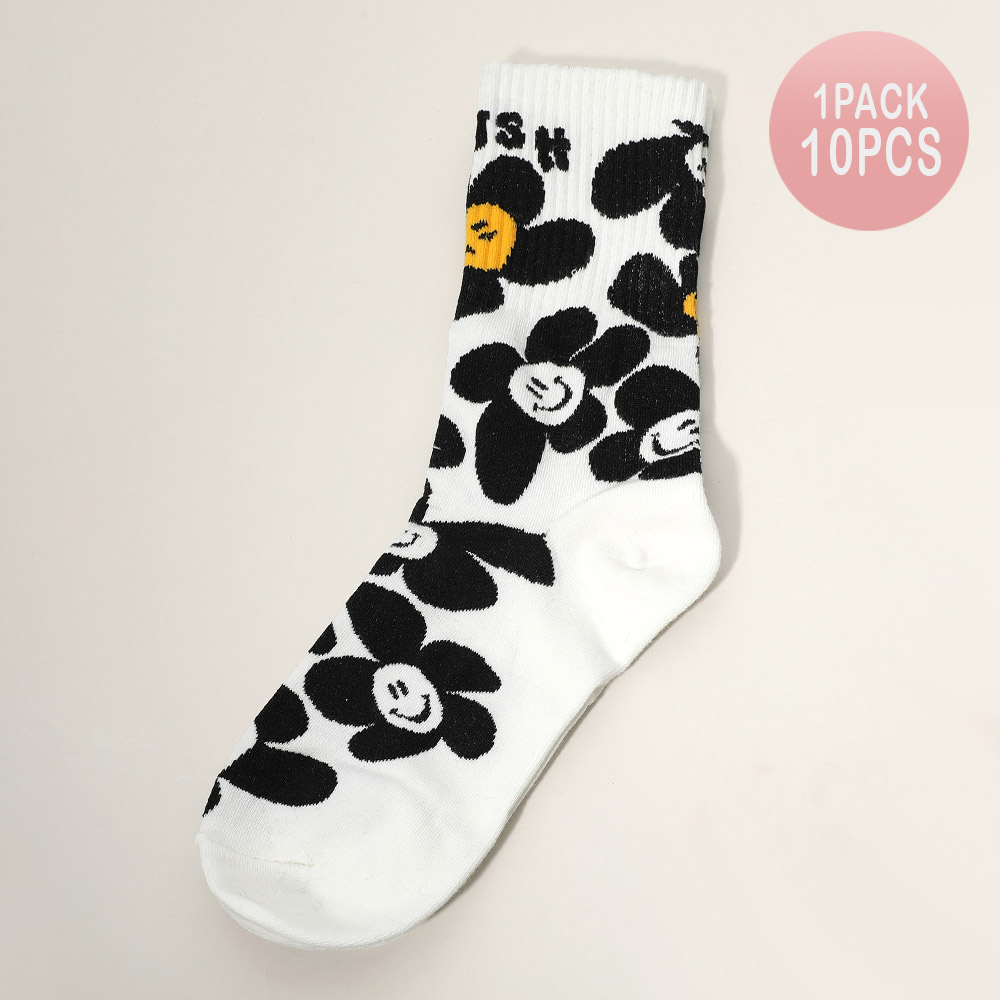 10Pairs - Smile Flower Pattern Printed Socks