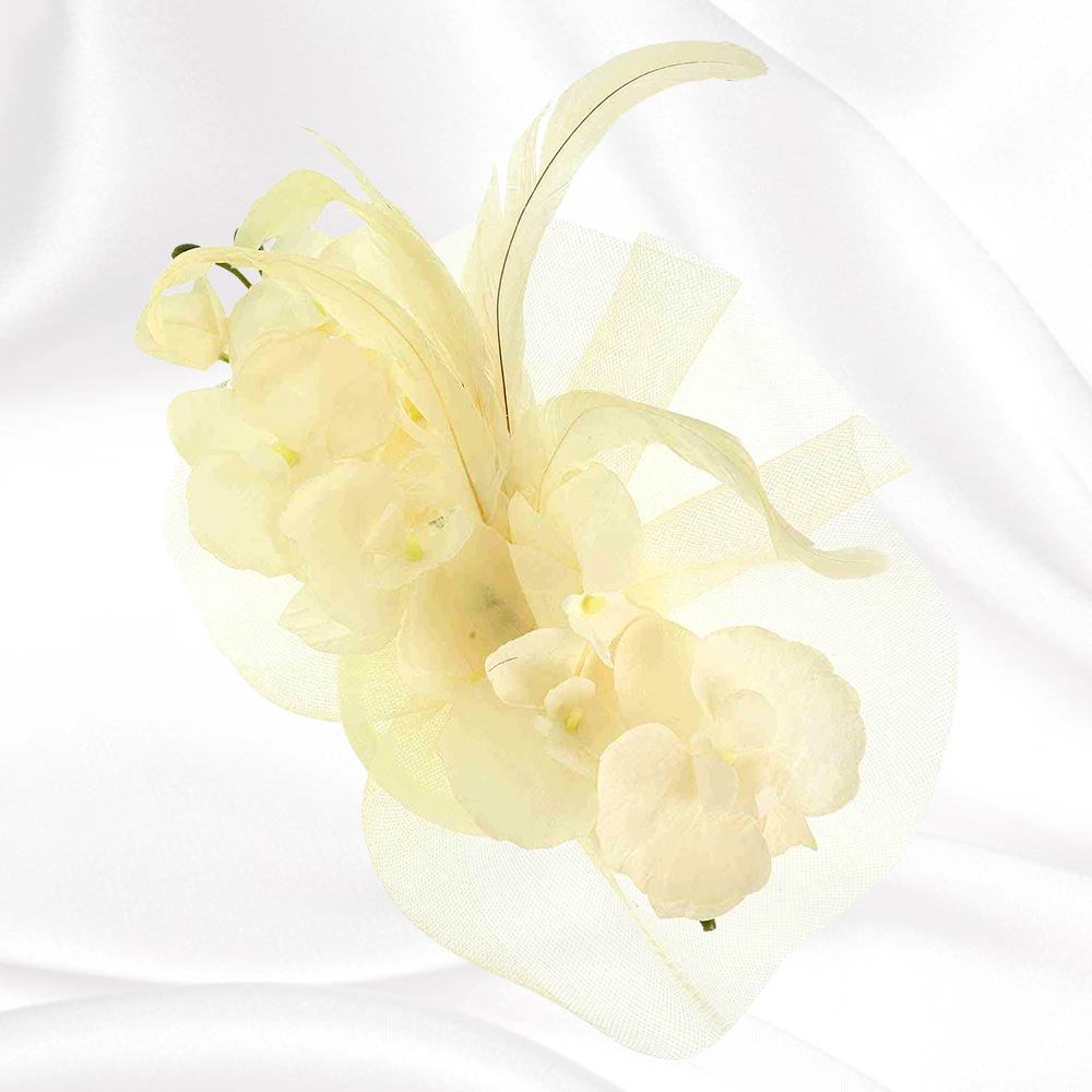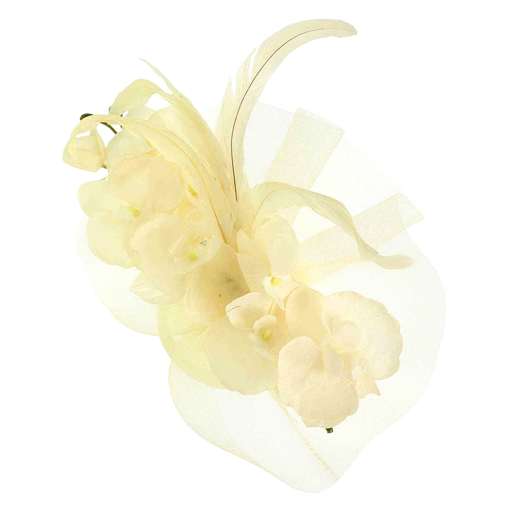 Feather Accent Mesh Floral Fascinator Hair Clip Headband