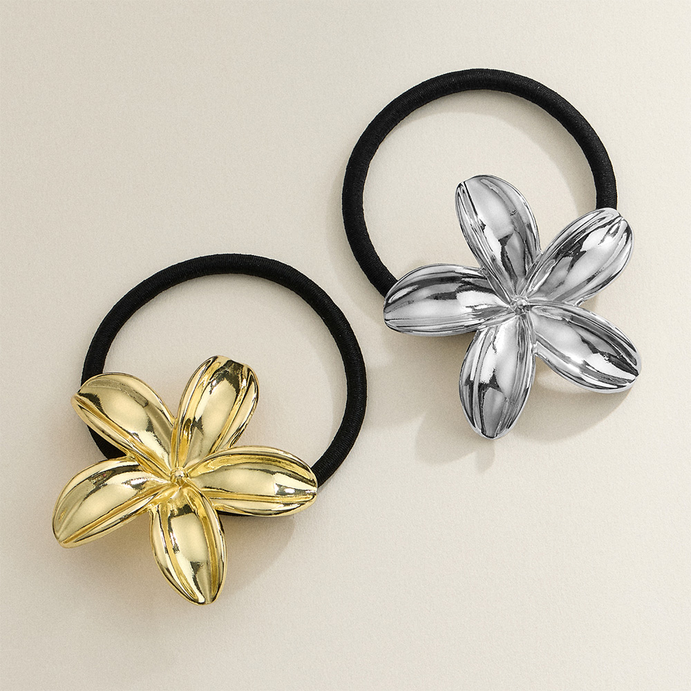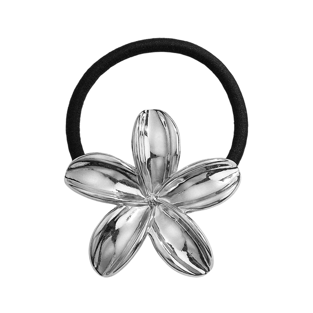 Details • Size : 2.1" X 2.1" • Stretchable • Add elegance to your hairstyle with this metallic flower hair band featuring a bold five-petal design and polished finish. Both functional and stylish, it keeps hair secure while serving as a statement accessory, perfect for casual looks, chic updos, or special occasions. • Lead and Nickel Compliant