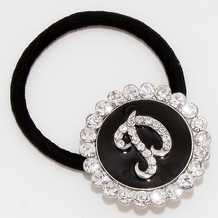 'P' Crystal Accented Initial Monogram Ponytail Hair Band