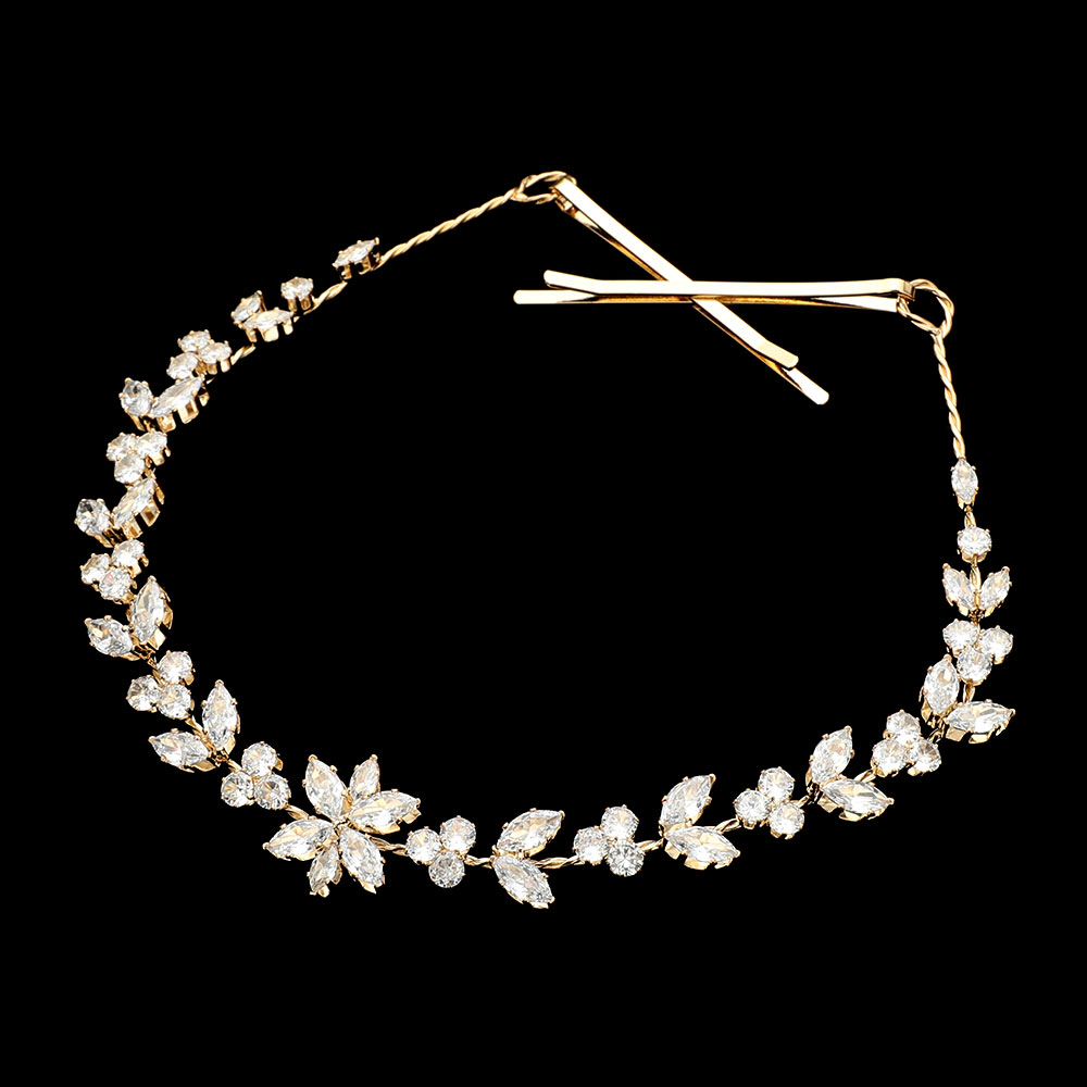 CZ Flower Stone Cluster Accent Vine Bun Wrap Headpiece