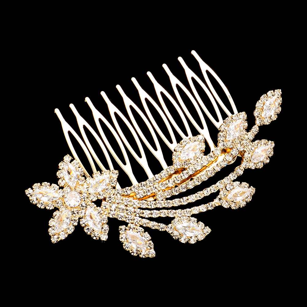Details • Size : 3.3" X 1.25" • Elegant floral pearl crystal hair clip featuring intricate flower and leaf details. Ideal for weddings, proms, or special occasions, this accessory adds a romantic, refined touch to bridal or evening hairstyles. • Lead and Nickel Compliant • CZ Cubic Zirconia
