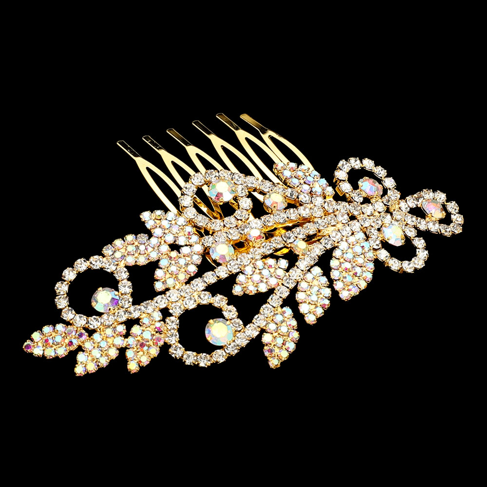 • Rhinestone floral bridal hair comb with intricate leaf and swirl design, sparkling with brilliance. Perfect for weddings, proms, and formal events, this elegant accessory enhances any updo with timeless beauty.