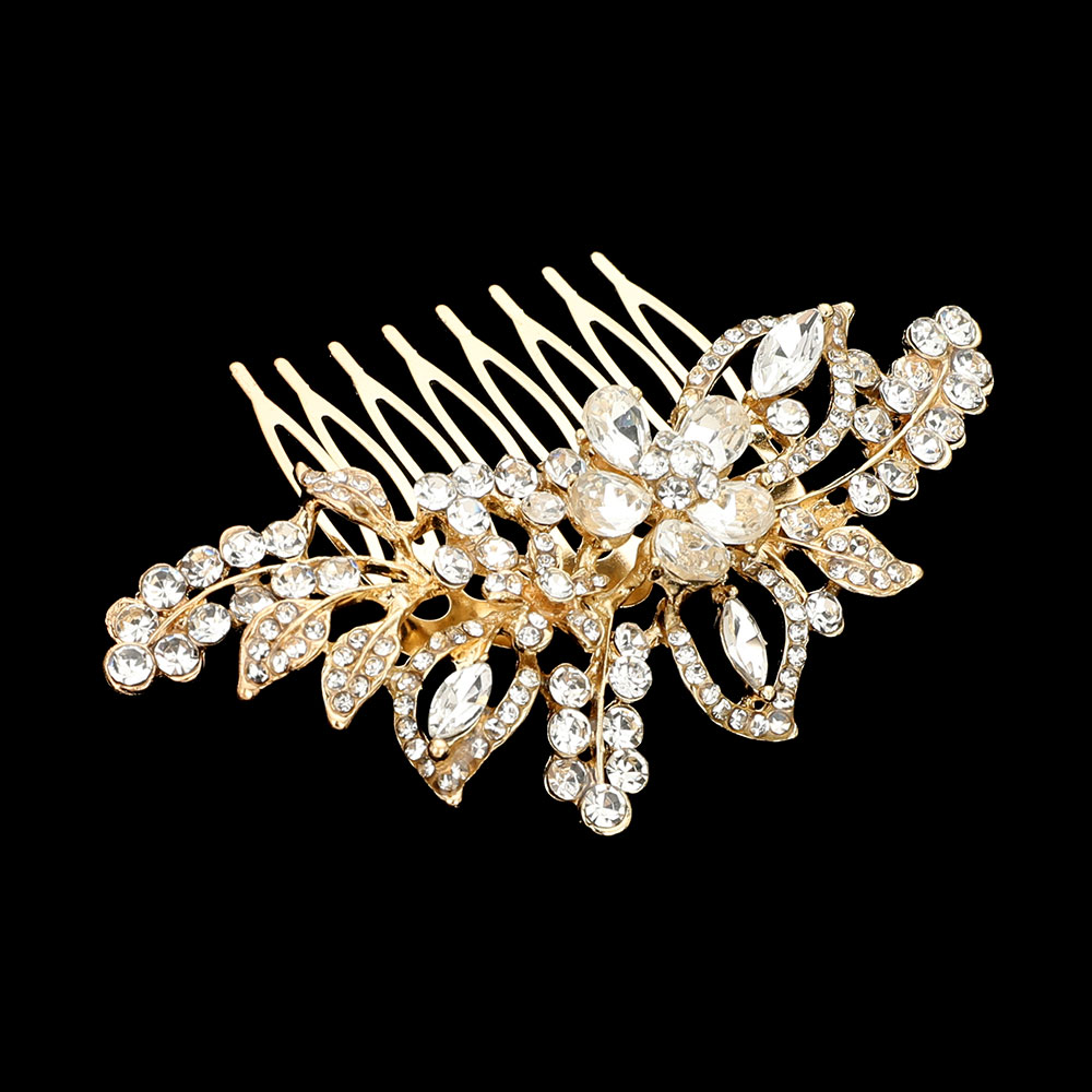 Details • Size : 3.5" X 1.6" • This elegant crystal floral hair comb showcases a graceful design with shimmering stones arranged in blooming patterns. Perfect for weddings, proms, or formal events, it adds radiant sparkle and timeless sophistication to any hairstyle, making it a stunning finishing touch. • Lead and Nickel Compliant