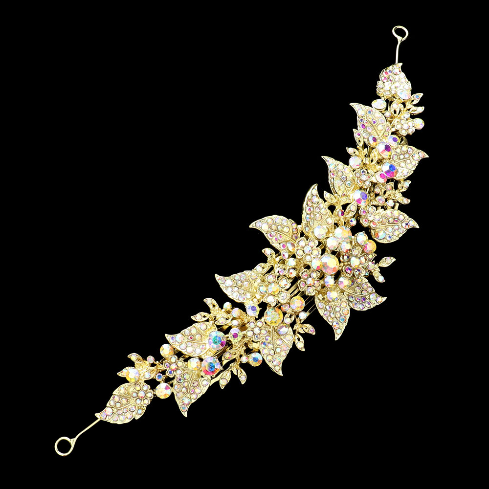 Flower Leaf Branch CZ tone Embellished Hair Comb