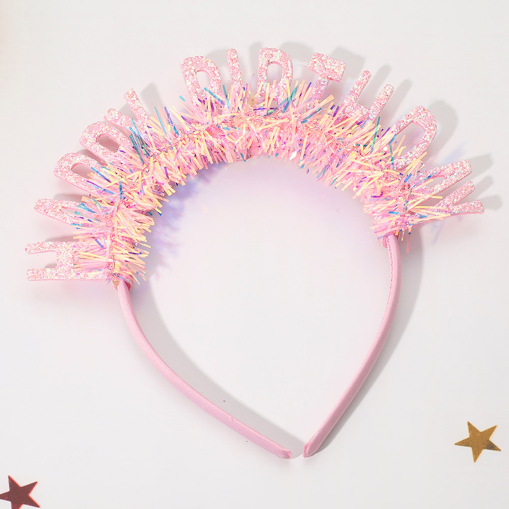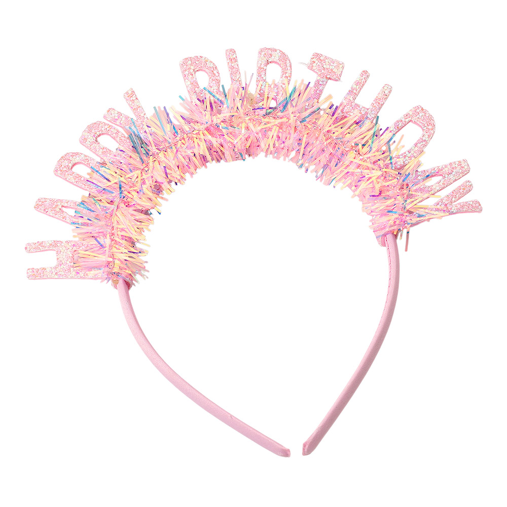 Details • Size : 1.5" H • Make any celebration shine with this “Happy Birthday” headband adorned with sparkling letters and festive tinsel accents. Lightweight and fun, it’s the perfect party accessory for adding a cheerful touch to your look and making birthday photos extra memorable.