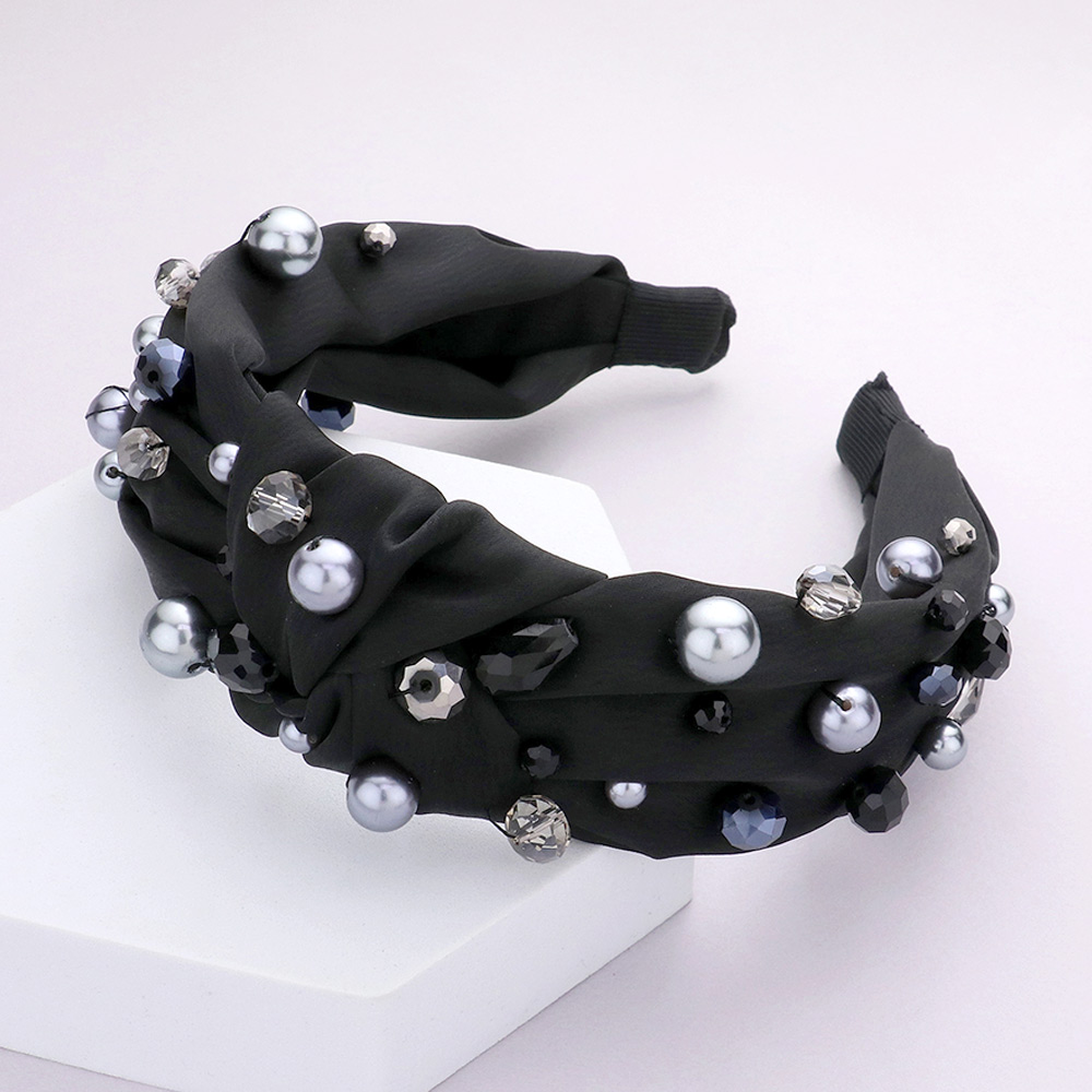 Pearl Multi Bead Embellished Knot Burnout Headband Pearl Multi Bead Embellished Knot Burnout Headband