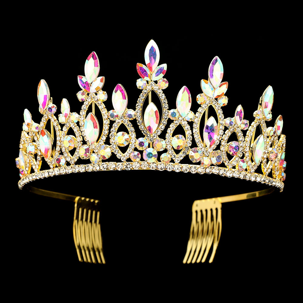 Marquise Stone Cluster Embellished Rhinestone Paved Crown Princess Tiara
