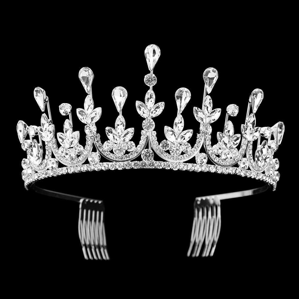 Teardrop Marquise Stone Cluster Embellished Princess Tiara Teardrop Marquise Stone Cluster Embellished Princess Tiara