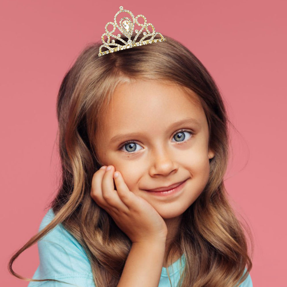 Details • Size : 1.8" H, 3" L • Elegant princess tiara crown featuring sparkling crystals and a dazzling centerpiece, perfect for birthdays, pageants, weddings, parties, and dress up. Lightweight and comfortable design adds a royal finishing touch.