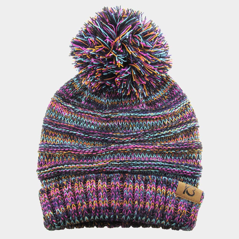 Cable Knit Ribbed Chunk Pom Pom Beanie Hat