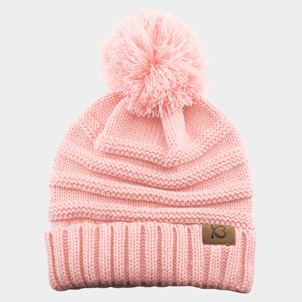 Cable Knit Ribbed Chunk Pom Pom Beanie Hat
