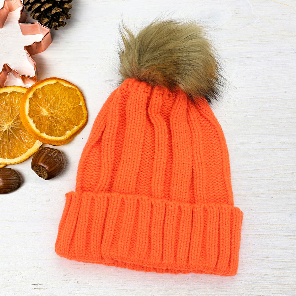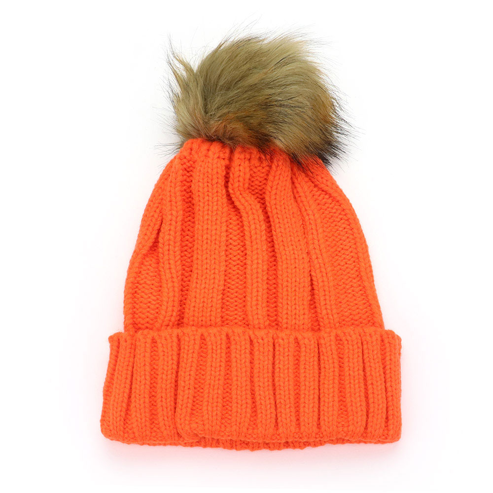 Chunky Knit Cuffed Pom Pom Single Layered Beanie Hat