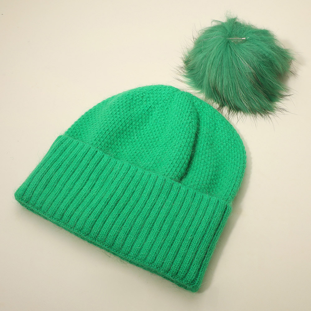 Details • Size : One Size • Material : 5% Rabbit Hair, 25% Nylon, 55% Rayon, 15% Polyester • Stay warm and stylish with this knit beanie featuring a detachable pom pom for versatile wear. Perfect for casual outings, outdoor adventures, or winter travel, this cozy hat combines comfort and fashion, making it an essential accessory for the cold season.