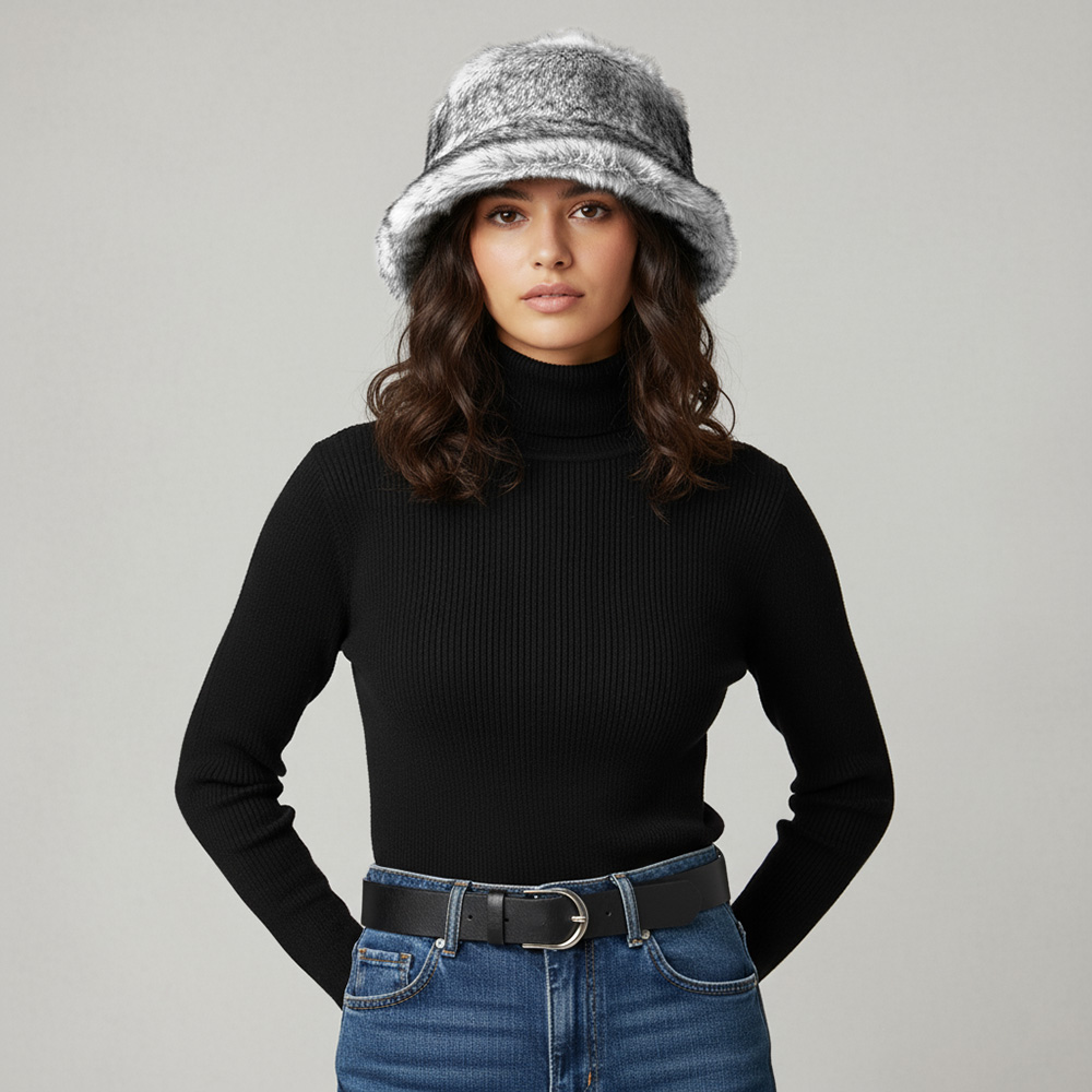 Details • Size : One Size • Material : 100% Polyester • Cozy bucket hat featuring a soft faux fur plush design, perfect for adding warmth and style to cold-weather outfits. This chic winter accessory offers a trendy and comfortable fit, ideal for both casual wear and fashion-forward looks.