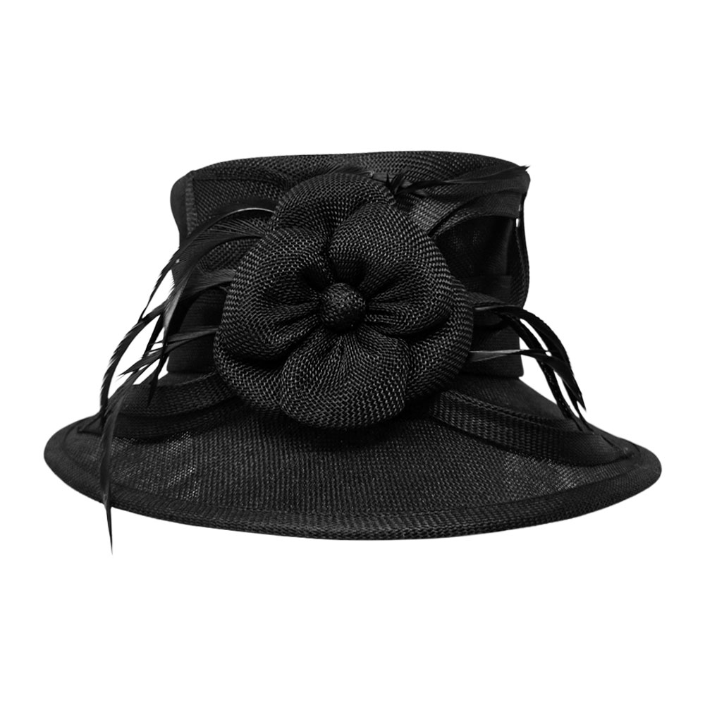 Flower Ribbon Feather Accented Sinamay Dressy Hat