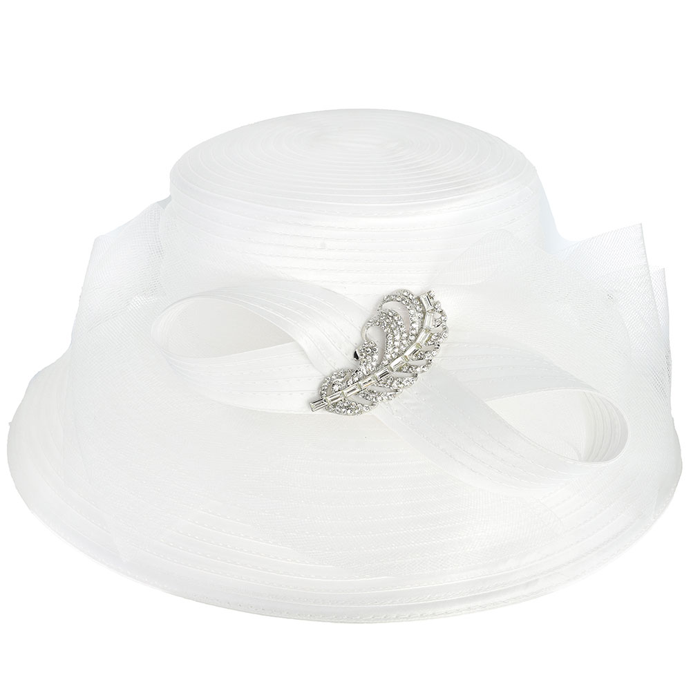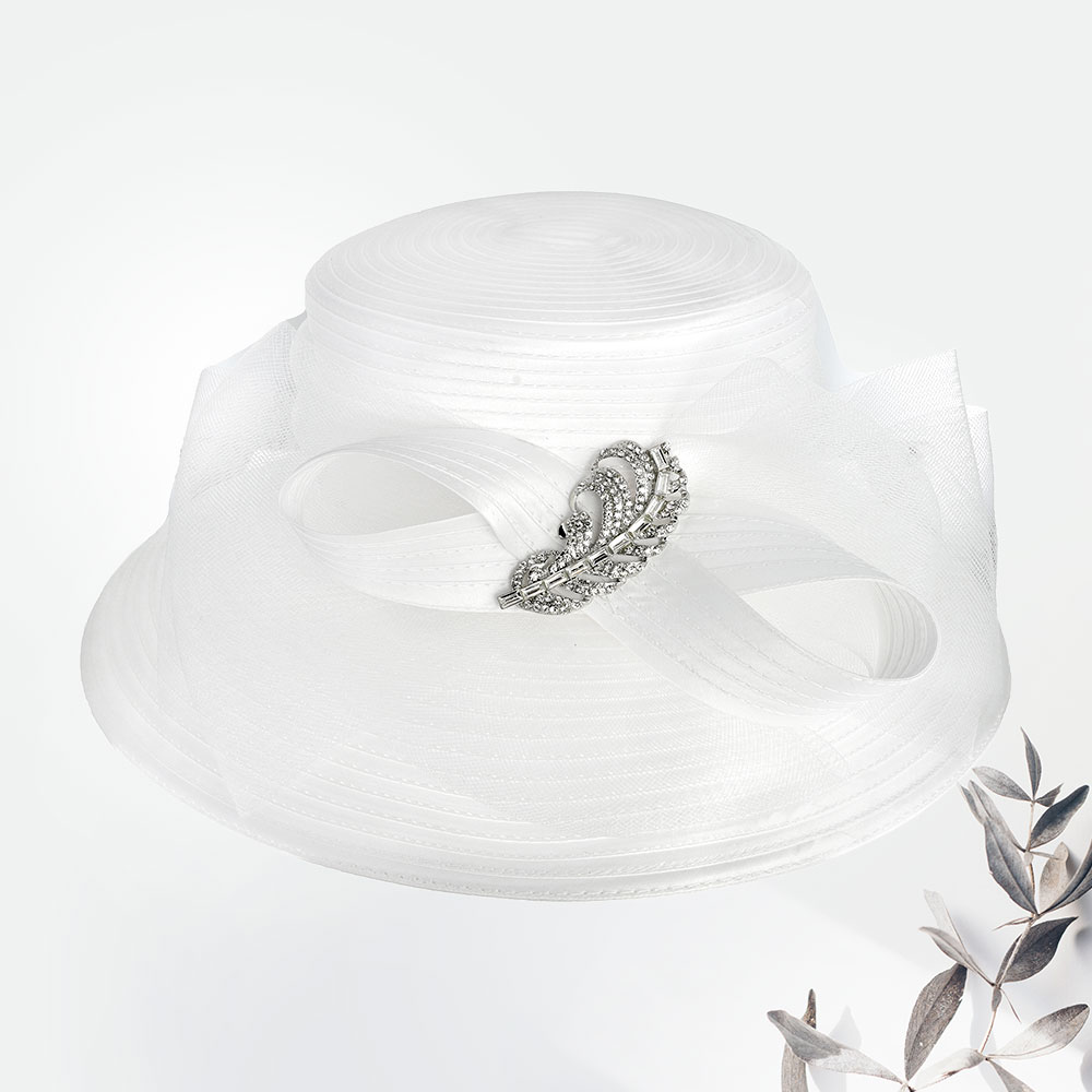 • Elegant wide brim dress hat featuring a sculpted bow and decorative accent, perfect for special occasions, events, or church wear. Designed to add a refined touch, this statement hat enhances formal outfits with graceful style and sophistication.