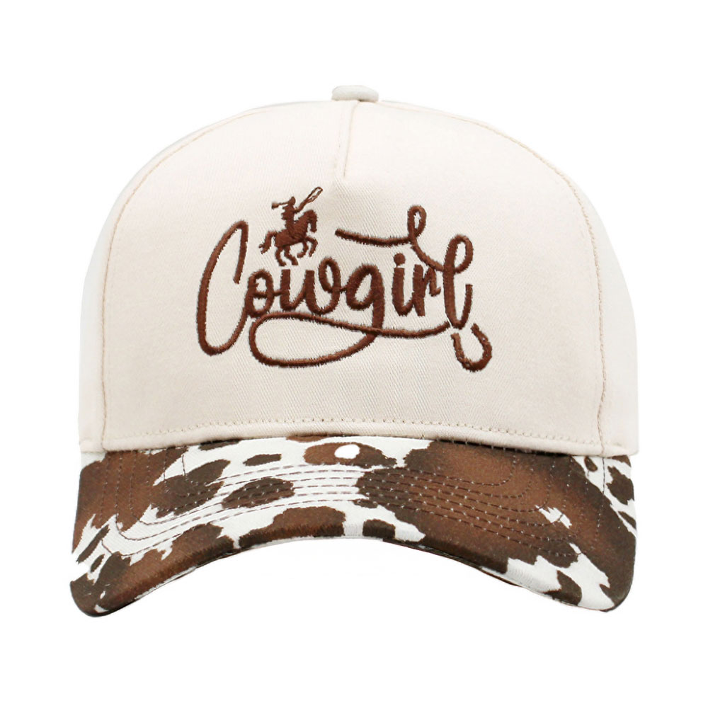 Animal Pattern Brim COWGIRL Message Embroidered Five Panel Canvas Baseball Cap