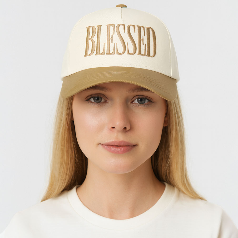 Details • Size : One Size Fits All - Adjustable Strap Makes Fit Comfortable • 5 Panel Canvas Cap : Adjustable Buckle Closure, Relaxed Fit and Pre-Curved Visor • Material : 100% Cotton • Celebrate positivity and everyday gratitude with this “Blessed” embroidered baseball cap, designed to add a chic statement to your casual look. Perfect for daily wear, errands, outings, or gifting, it brings a meaningful touch to any outfit while offering comfort and laid-back style that complements your personality and mood effortlessly.