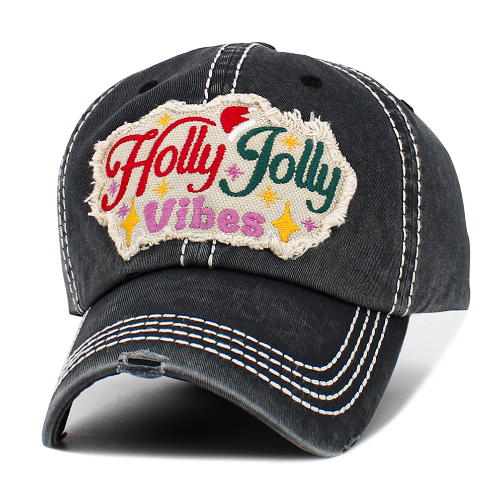 HOLLY JOLLY Vibes Message Embroidered Christmas Vintage Baseball Cap