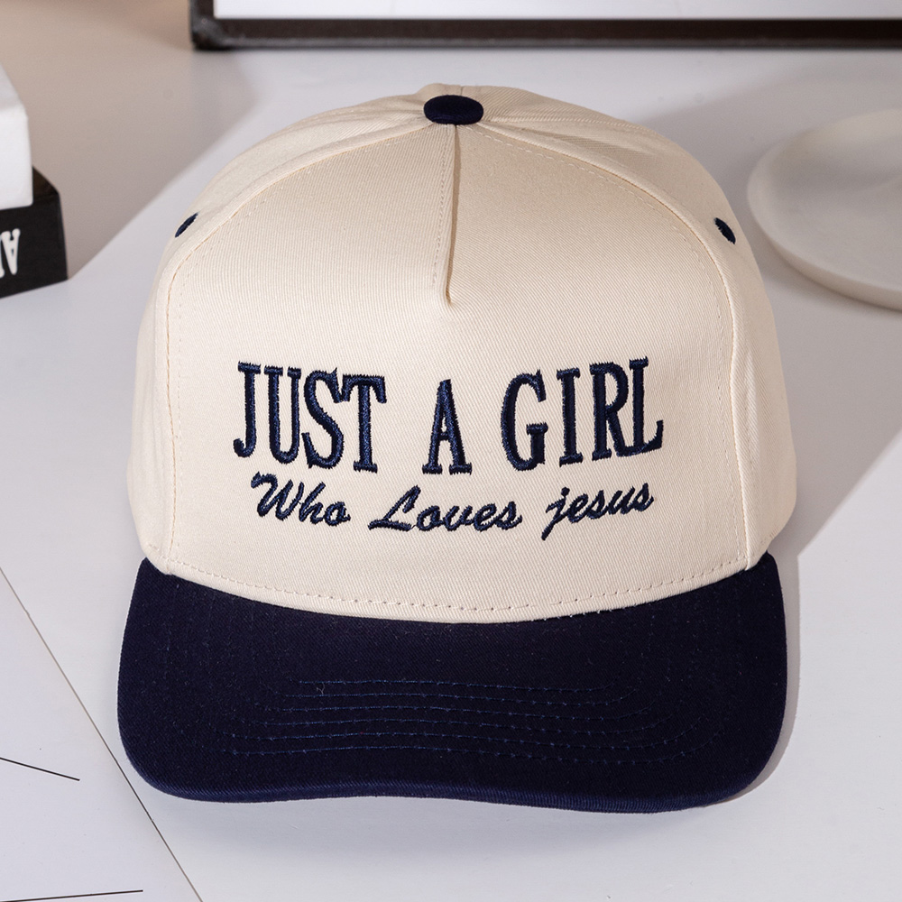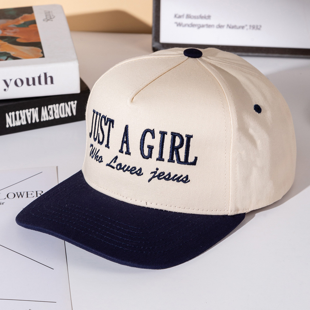 Details • Size : One Size Fits All - Adjustable Strap Makes Fit Comfortable • 5 Panel Canvas Cap : Adjustable Buckle Closure, Relaxed Fit and Pre-Curved Visor • Express your faith in style with the Just a Girl Who Loves Jesus snapback hat. Designed with bold embroidered lettering and a structured fit, this cap makes a meaningful fashion statement. Perfect for casual wear, outdoor activities, or as a thoughtful faith-inspired gift.