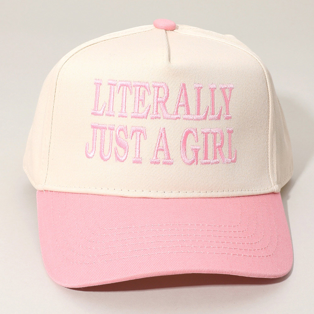 LITERALLY JUST A GIRL Message Embroidered Baseball Cap