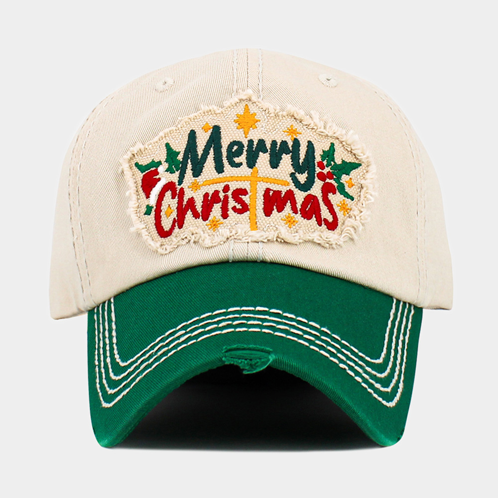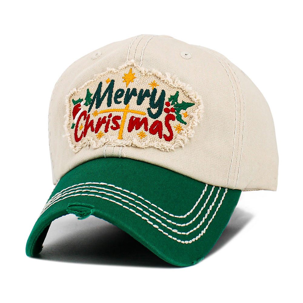 • Festive baseball cap featuring a bright “Merry Christmas” embroidered patch with a distressed edge for a cheerful holiday look. Ideal for casual wear or seasonal gatherings, this adjustable cap adds a fun and spirited touch to your winter wardrobe and festive celebrations.