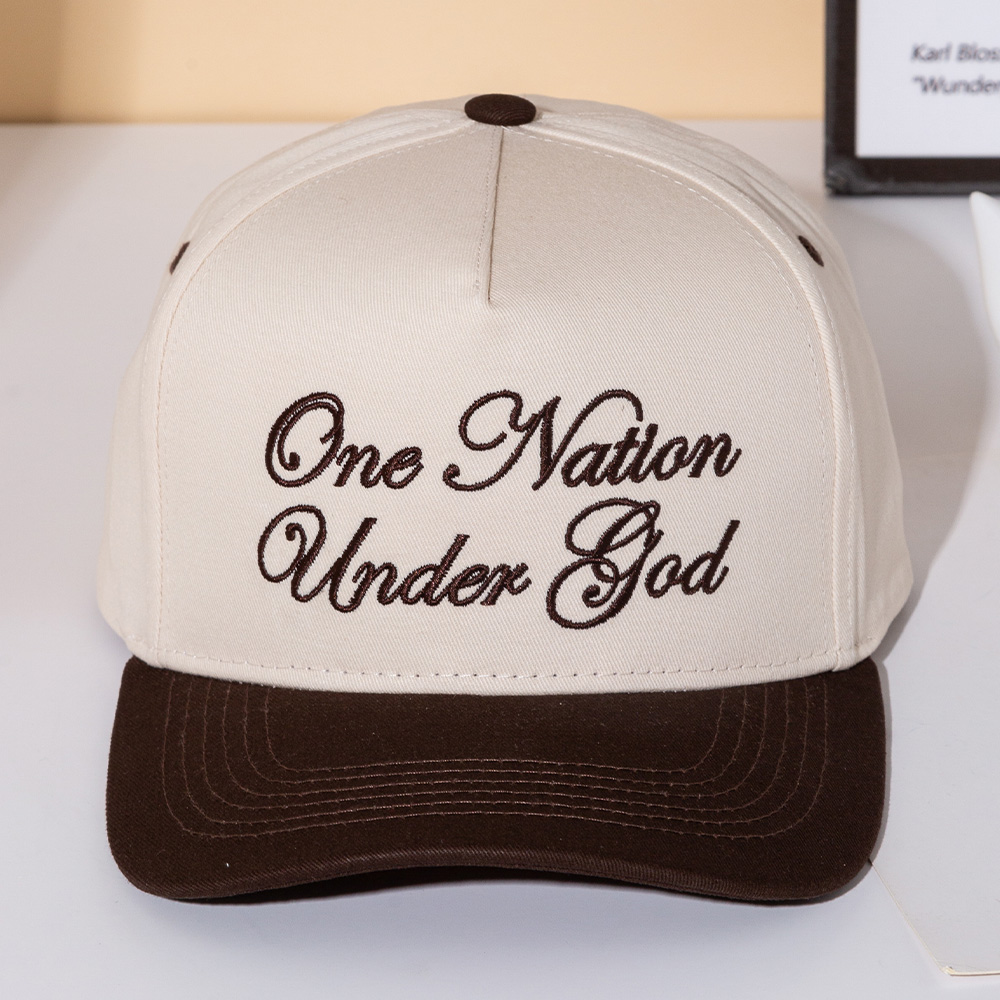 Details • Size : One Size Fits All - Adjustable Strap Makes Fit Comfortable • 5 Panel Canvas Cap : Adjustable Buckle Closure, Relaxed Fit and Pre-Curved Visor • Show your faith and pride with this bold “One Nation Under God” embroidered cap. Designed with a classic fit and adjustable style, this inspirational hat is perfect for everyday wear, church events, patriotic holidays, or as a meaningful gift that combines comfort, style, and a powerful message.