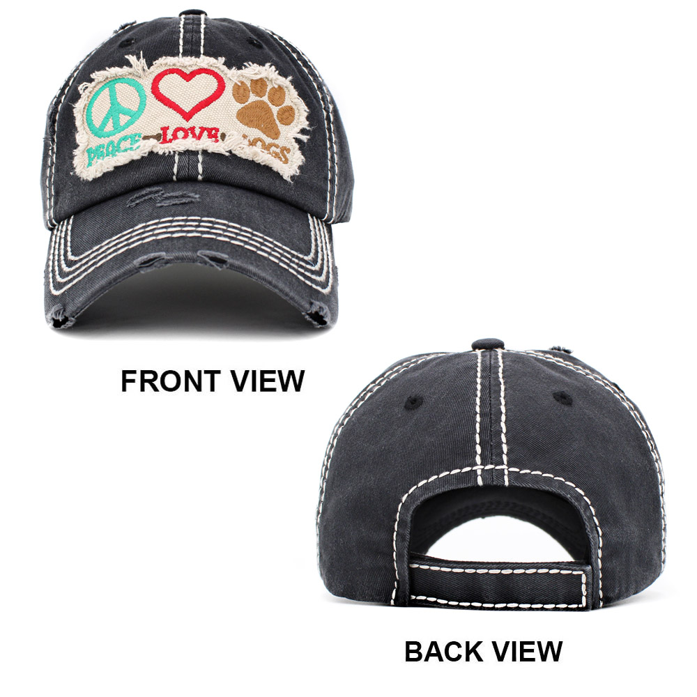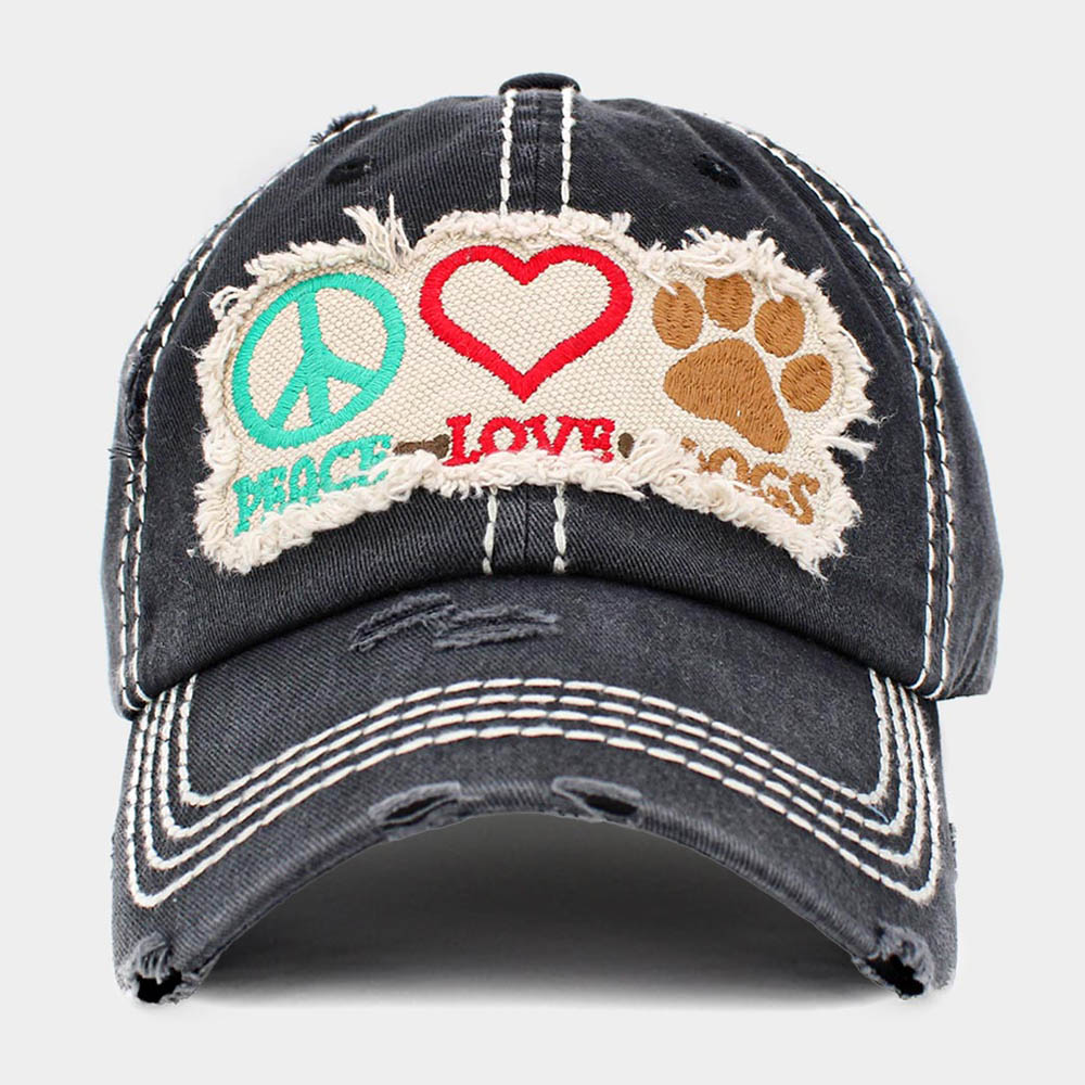 PEACE LOVE DOGS Message Vintage Baseball Cap