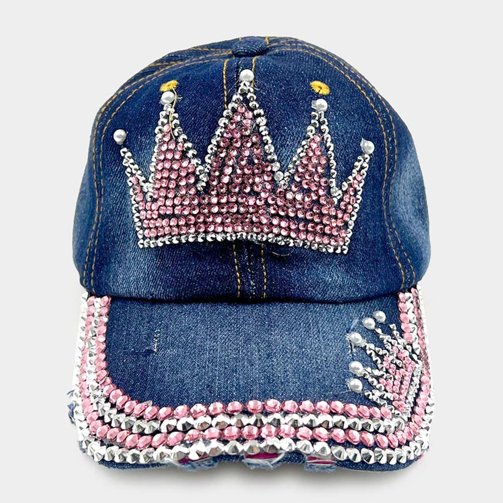 Details • Crown Circumference : 23" (Adjustable) • Crown Height : 4.25" • Brim Height : 2.75" • Material : 100% Cotton • Fashionable denim baseball cap featuring a sparkling rhinestone crown motif with matching brim accents. A stylish accessory perfect for casual outfits, parties, festivals, or gifting. Adds a touch of glam and confidence while providing everyday comfort and standout appeal for trendsetters.