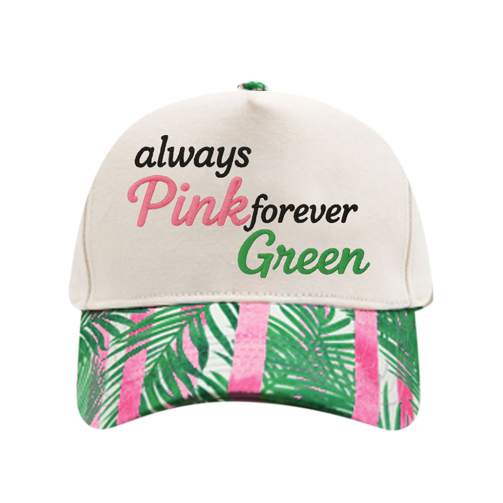 PINK GREEN Message Embroidered Palm Tree Pattern Printed Brim Baseball Cap