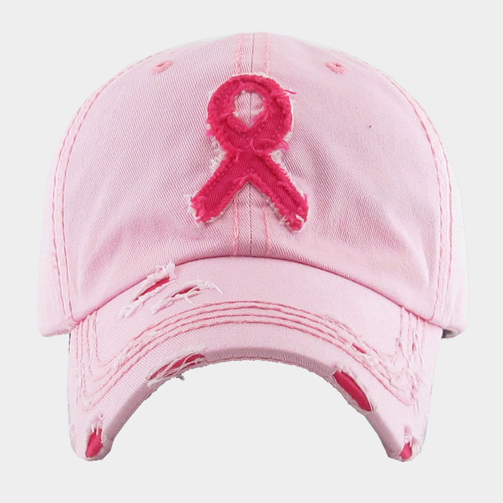 Pink Ribbon Accented Vintage Baseball Cap