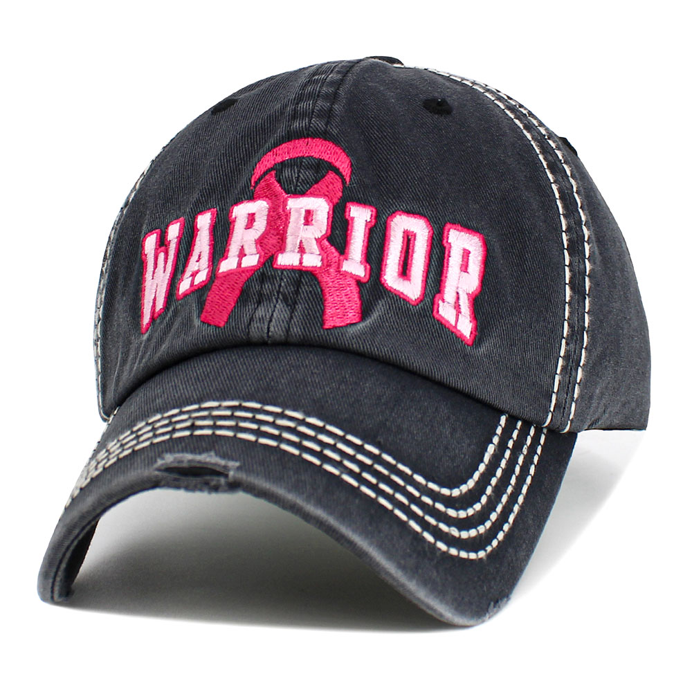 Pink Ribbon WARRIOR Embroidered Accented Vintage Baseball Cap