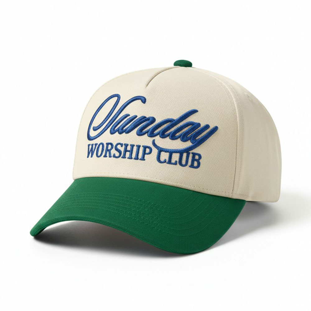 SUNDAY WORSHIP CLUB Embroidered Five Panel Canvas Baseball Cap