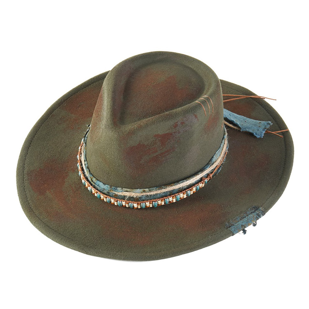 Details • Crown Circumference : 23" • Crown Height : 4.5" • Brim Height : 3.75" • Material : 100% Polyester • Add rustic charm to your look with the Vintage Western Hat featuring a handcrafted beaded band. Its distressed finish and timeless shape make it perfect for festivals, outdoor adventures, or casual wear, offering both standout style and all-day comfort with western flair.