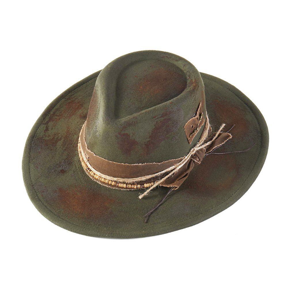 Details • Crown Circumference : 23" • Crown Height : 4.5" • Brim Height : 3.75" • Material : 100% Polyester • Show off rugged charm with the Distressed Vintage Western Hat, featuring a rustic woven band and weathered finish for an authentic look. Perfect for festivals, travel, or casual wear, this timeless accessory adds bold western character to any outfit with lasting comfort and flair.