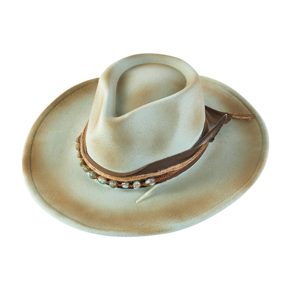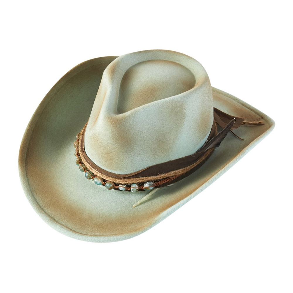 Details • Crown Circumference : 23" • Crown Height : 4.5" • Brim Height : 3.75" • Material : 100% Polyester • Bring timeless western style to your wardrobe with this Western Hat featuring a handcrafted beaded band and feather accent. Its vintage-inspired distressed finish adds rustic character, perfect for outdoor events, festivals, or everyday wear with effortless classic appeal.
