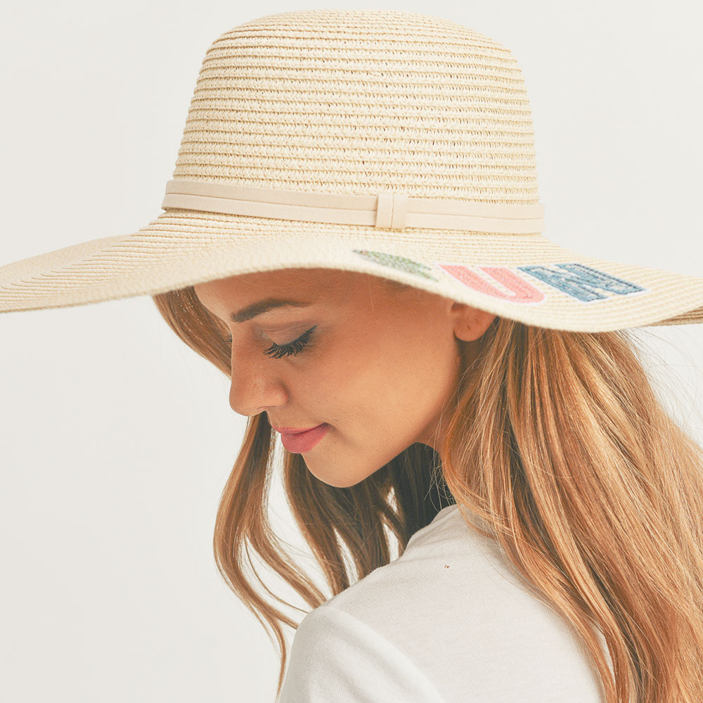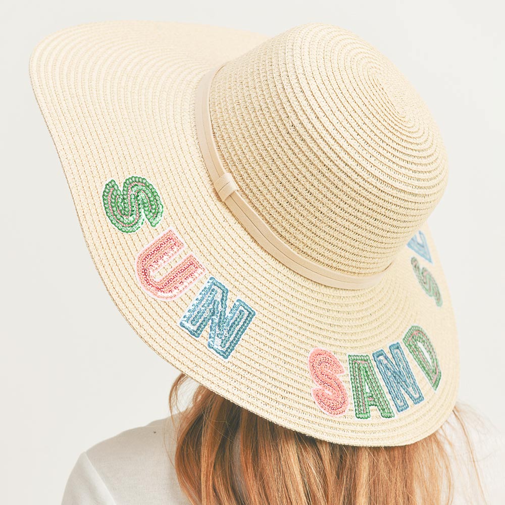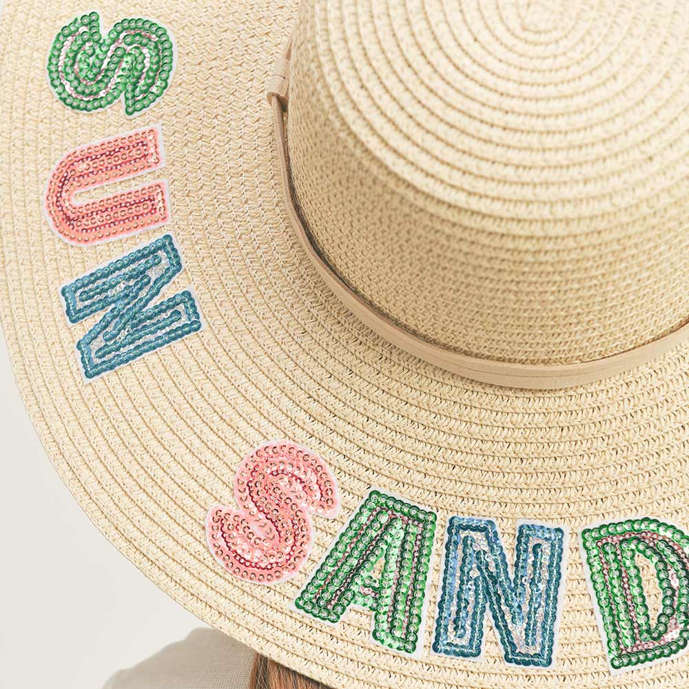 Sun Sand Sea Sequin Message Straw Panama Sun Hat