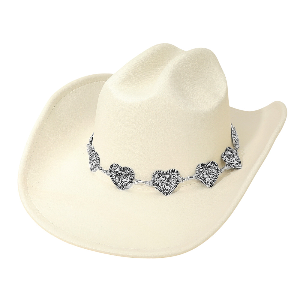 • Western-style cowboy hat accented with a heart concho chain band for a unique and stylish touch. Perfect for rodeo events, concerts, festivals, or everyday western fashion, this hat combines durability with standout charm, making it an essential accessory for bold, country-inspired looks.