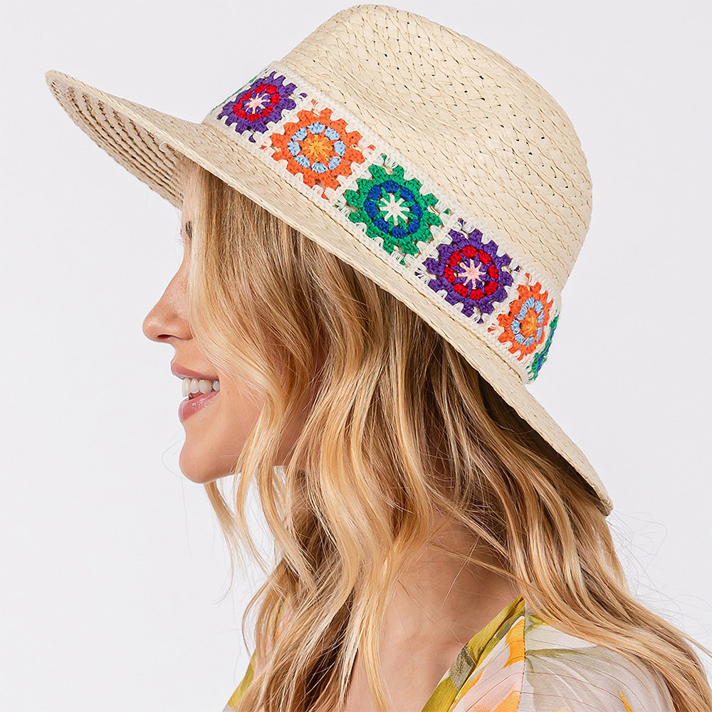 Always On Vacay Sequin Message Straw Panama Sun Hat