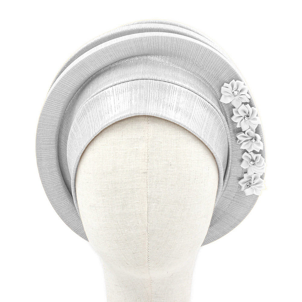 • This structured layered headwrap adds standout elegance with its sculpted silhouette and delicate floral accents. Designed for a polished, expressive look, it brings refined style to special events and everyday outfits, offering a bold yet graceful finishing touch that elevates any ensemble.