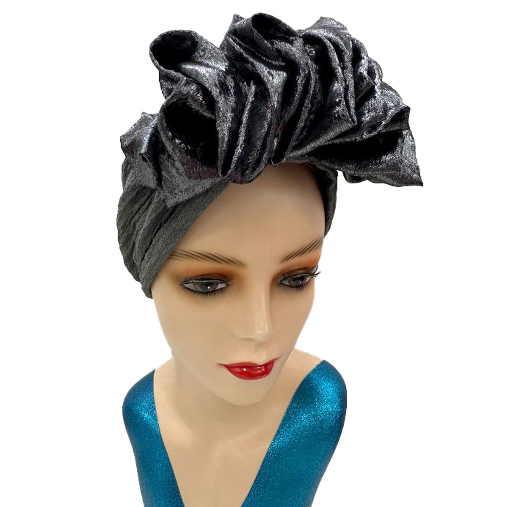 • This elegant ruffled statement headwrap adds dramatic flair and sophistication to any outfit. Designed with voluminous layered detailing, it offers a bold, sculpted silhouette perfect for special occasions, cultural events, or elevating everyday fashion with timeless grace.