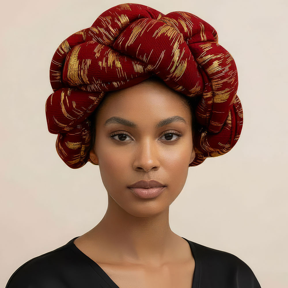 • Statement braided padded headwrap turban featuring a thick knot design and full wrap style for standout volume. Soft, comfortable fit ideal for fashion styling, cultural wear, or special events. Adds bold texture and elevated flair to any outfit.