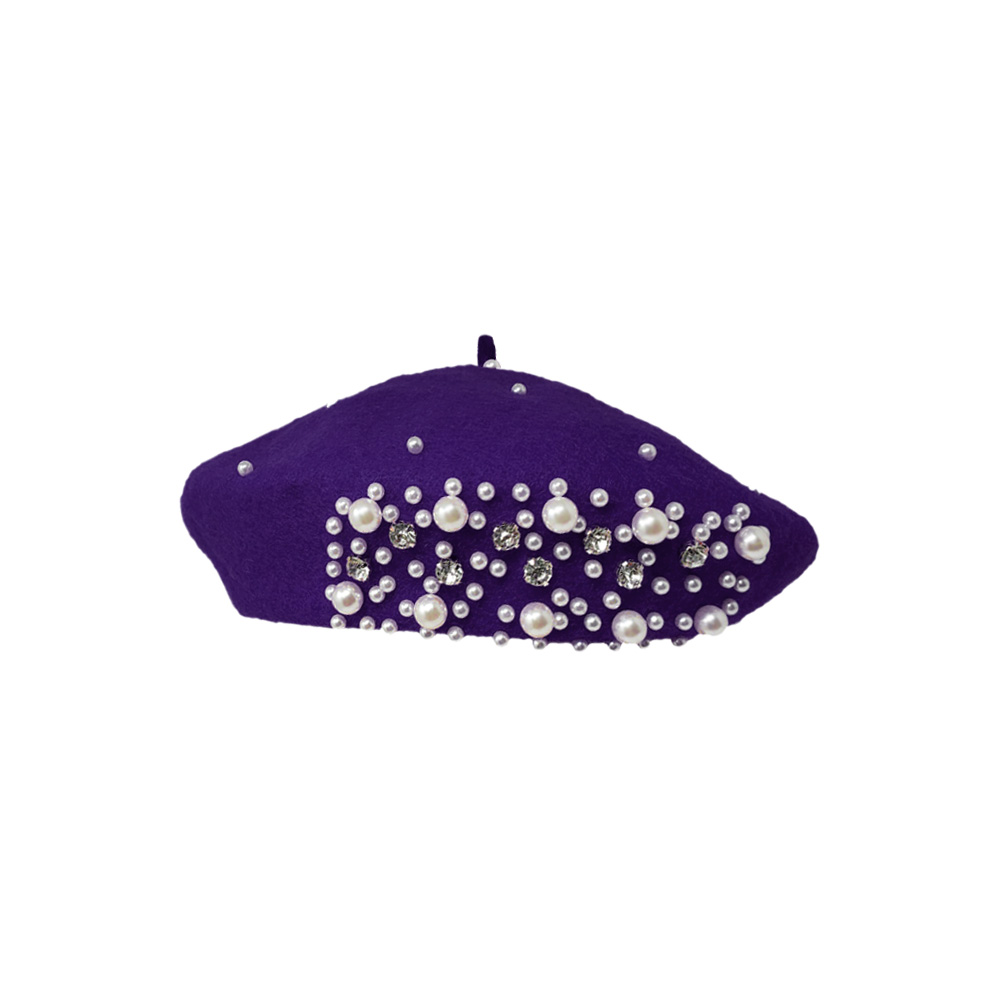 • Chic beret hat adorned with pearl embellishments for a stylish and elegant look. Perfect for elevating seasonal outfits, this accessory adds a touch of sophistication and charm, making it a fashionable addition to both casual and dressy wardrobes.