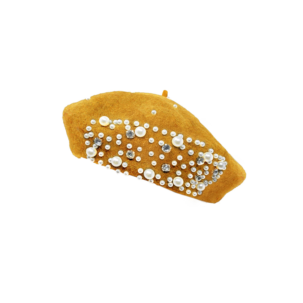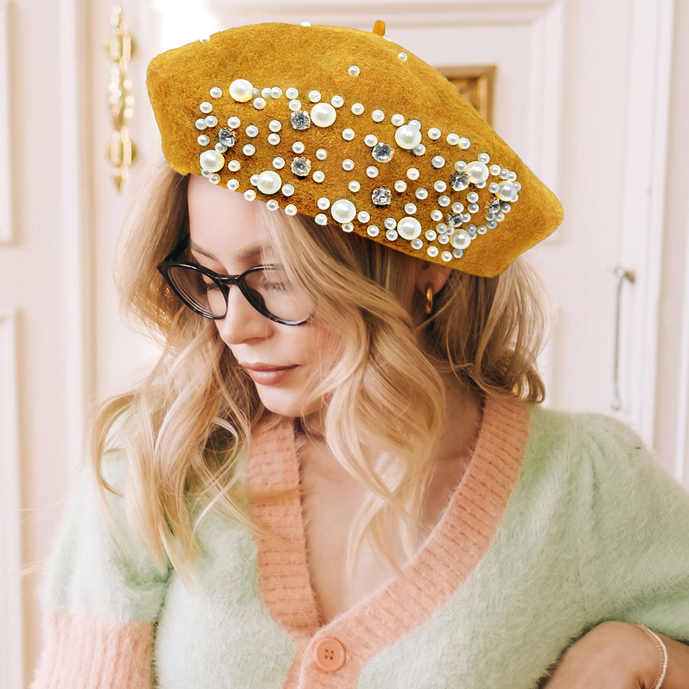 Pearl Stone Embellished Wool Blend Beret Hat Pearl Stone Embellished Wool Blend Beret Hat