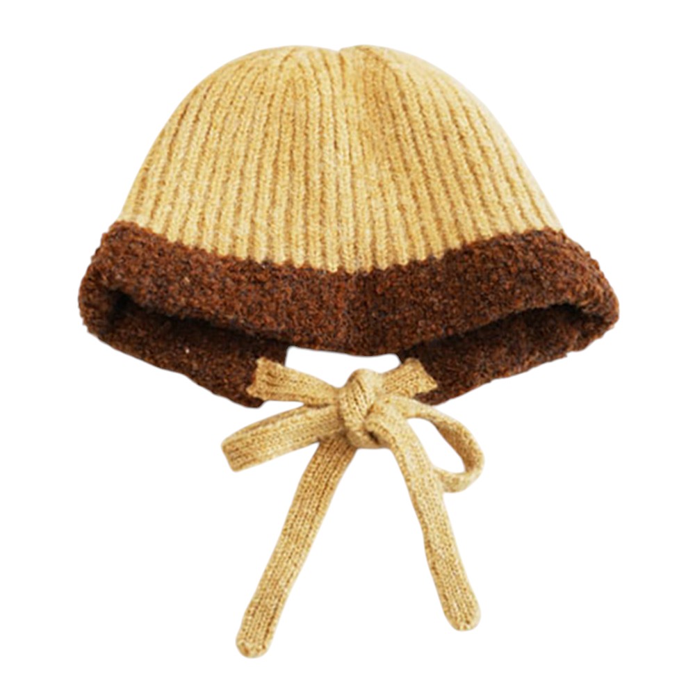 Details • Size : One Size • Material : 8% Wool, 21% Nylon, 70% Polyester, 1% Spandex • Stay warm and chic with this knit bonnet hat featuring a soft ribbed design, cozy lined interior, and adjustable tie closure under the chin. Perfect for cold-weather outings, this stylish winter cap combines vintage charm with modern comfort, making it a versatile accessory for seasonal wear.