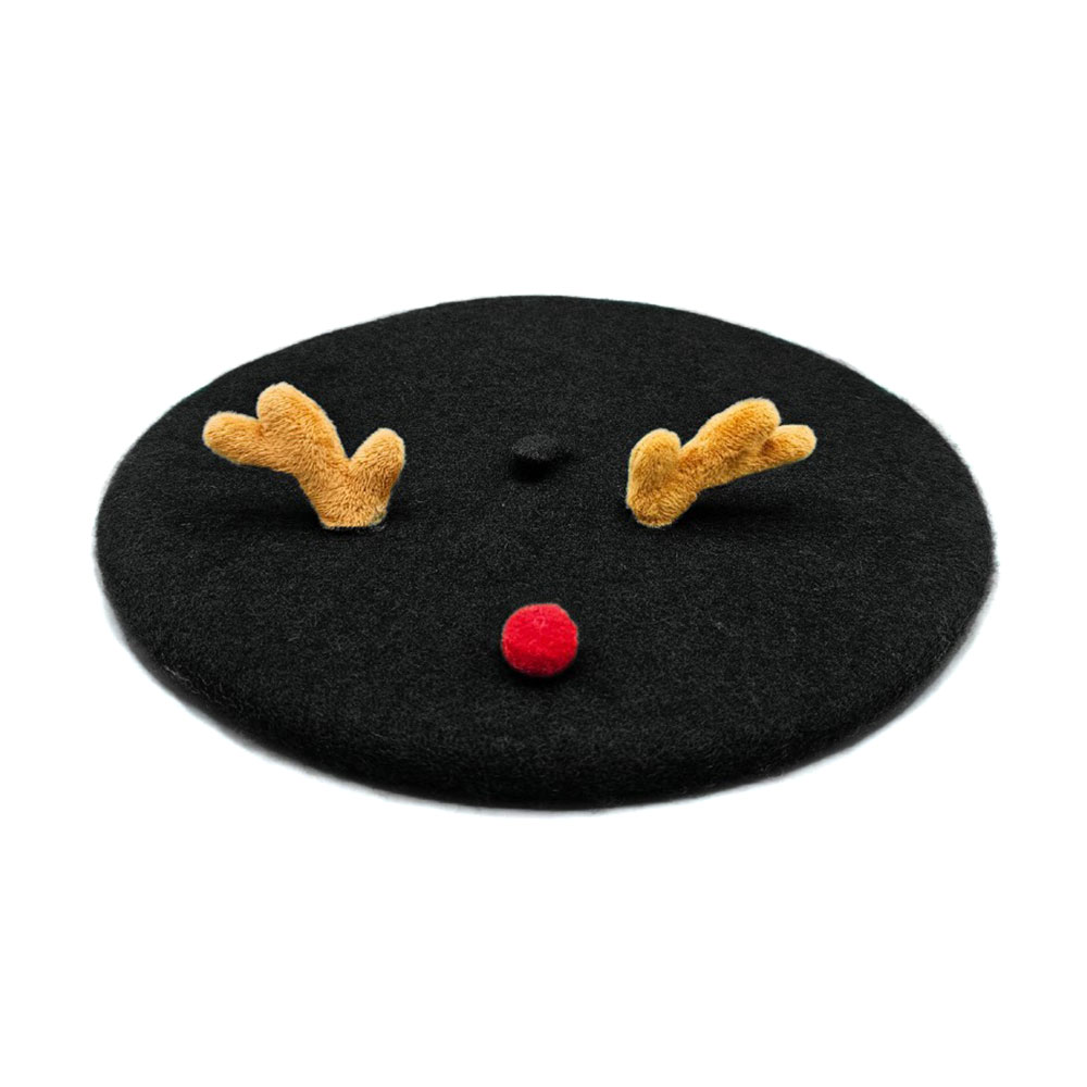 Wool Blended Christmas Rudolph Pointed Beret Hat Wool Blended Christmas Rudolph Pointed Beret Hat Wool Blended Christmas Rudolph Pointed Beret Hat