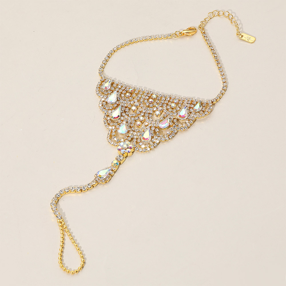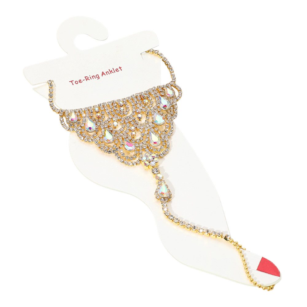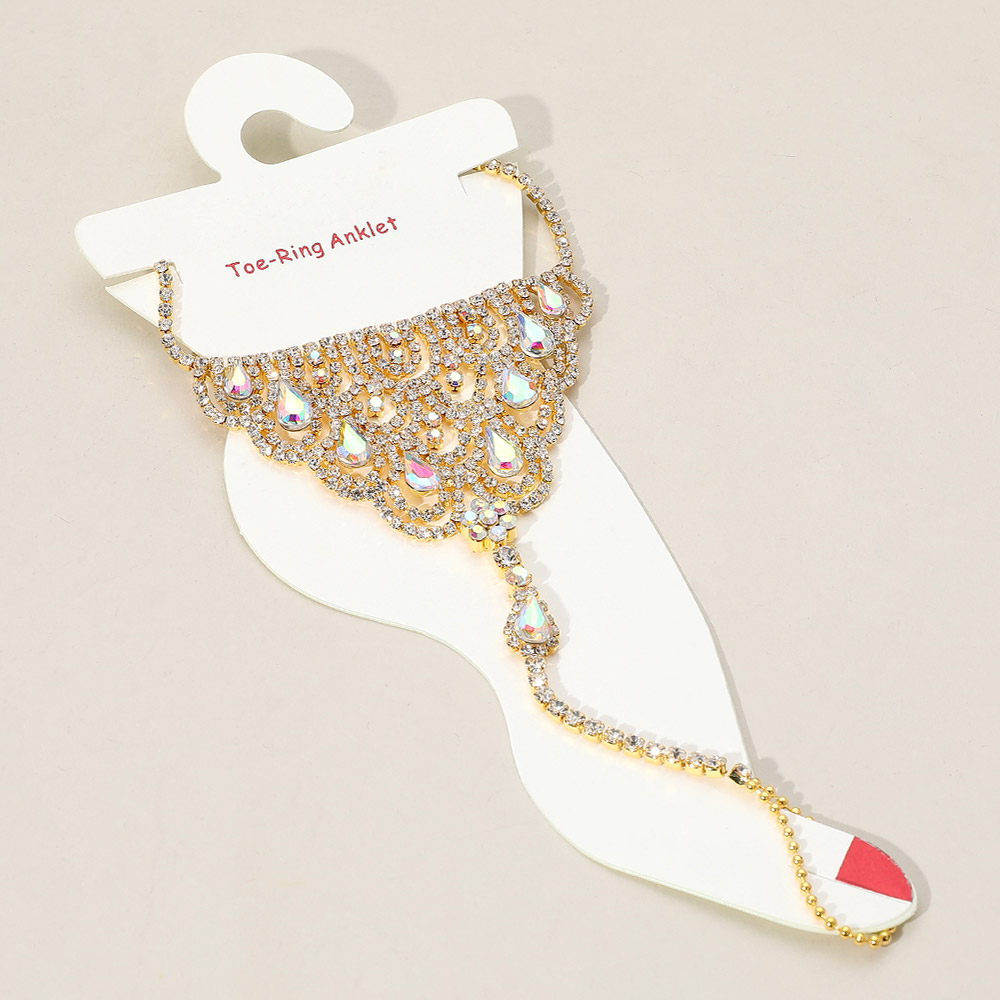 Teardrop Accented Rhinestone Net Toe Ring Evening Anklet