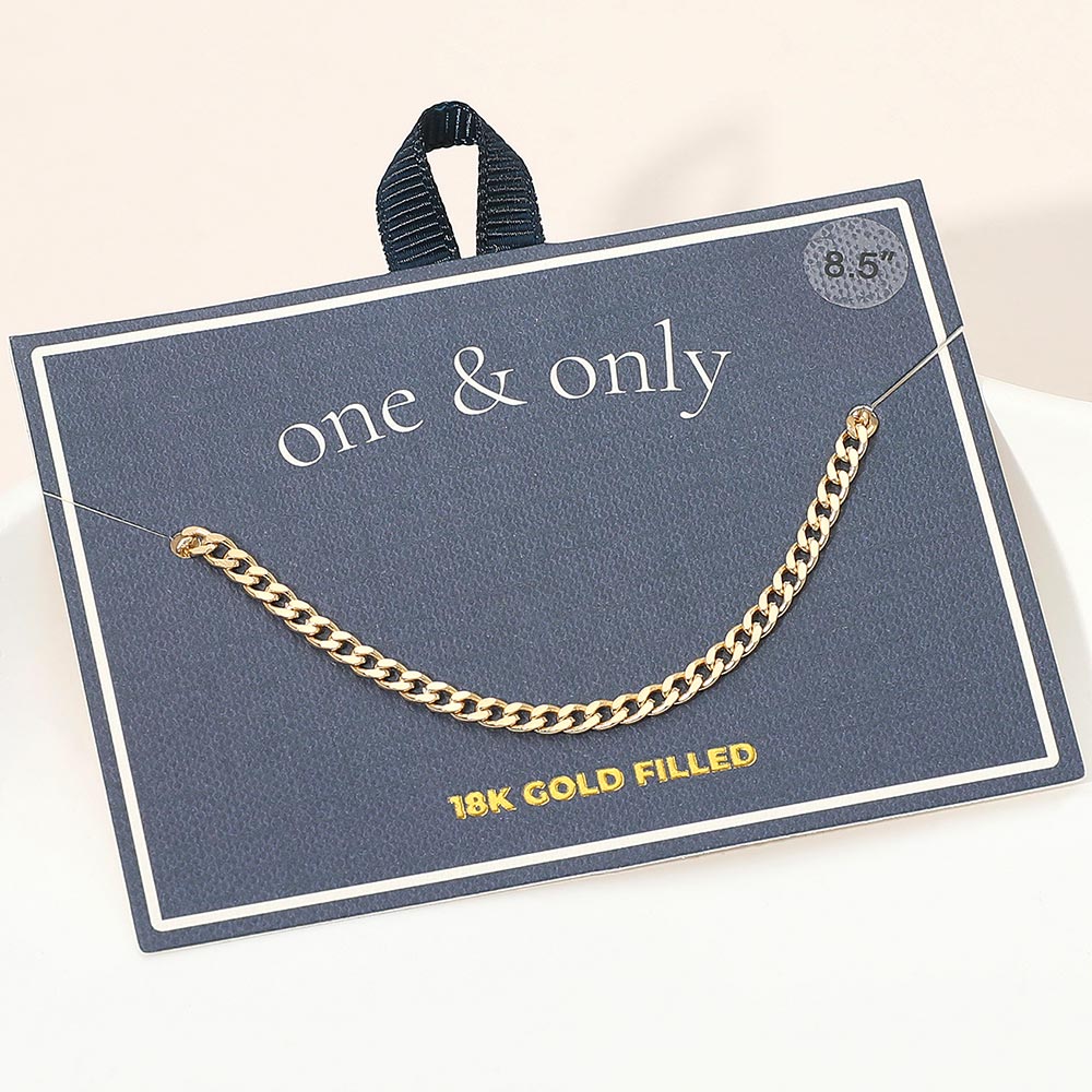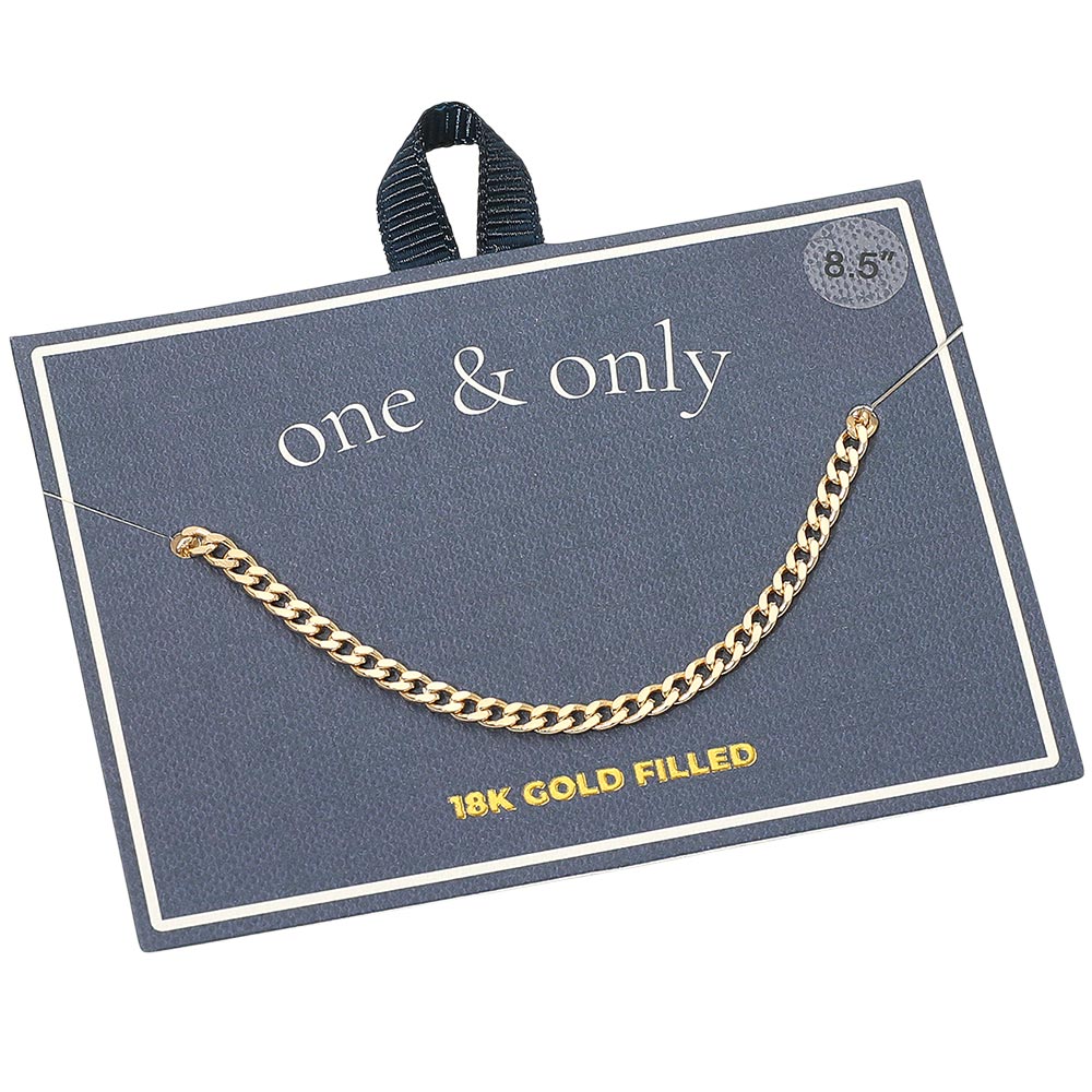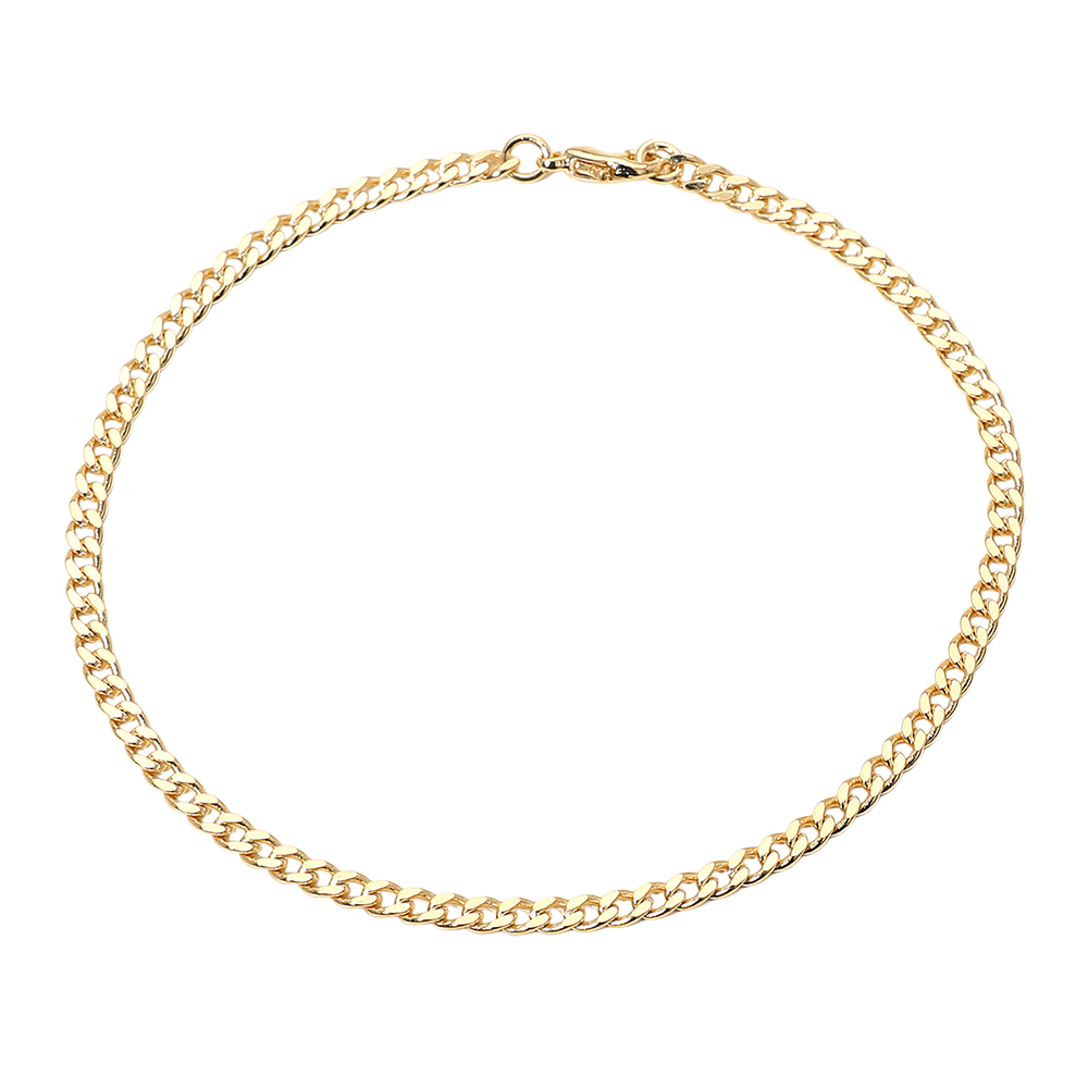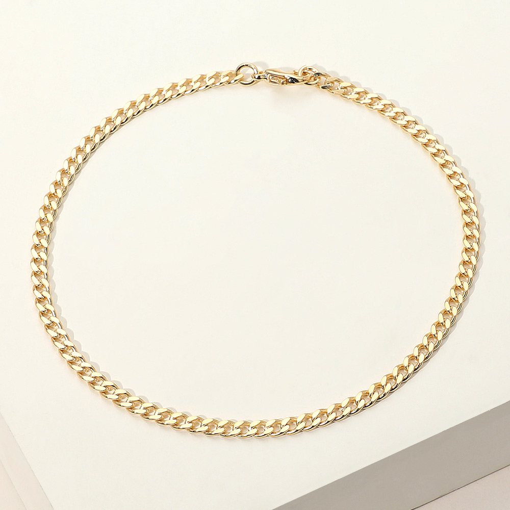 Details • Size : 0.1" H (3mm), 8.5" L • Lobster Clasp • Timeless Cuban chain anklet featuring smooth flat links with a sleek polished shine. Its classic design offers effortless sophistication, perfect for daily wear or layering with other pieces. A versatile accessory that adds a refined touch to any modern or classic look. • Gold Filled • Lead and Nickel Compliant • Made In Brazil